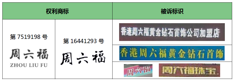原审两被告均不服福建省高级人民法院的再审判决,向福建省人民检察院提起民事检察监督申请。经民事监督审查,福建省人民检察院驳回两案的监督申请,均认定:权利人的“ ”“ ”商标具有较高市场知名度,被诉侵权标识“ ”使用在店铺及广告牌的显著位置,其中的“香港”系行政区划名称、“黄金钻石首饰”系经营范围、“公司”或“加盟店”系组织形式,均不具备识别商品来源的功能,只有“周六福”字号系该域外企业名称中最具显著性和识别性的部分,与权利人注册商标的中文部分完全相同,理应避让合法在先权利。在两者经营范围重叠的情况下,被诉侵权标识的使用方式易使消费者产生混淆误认,进而挤占周六福珠宝公司的交易机会。故再审判决认定事实清楚、适用法律正确,并无不当,对原审两被告的监督申请予以驳回。